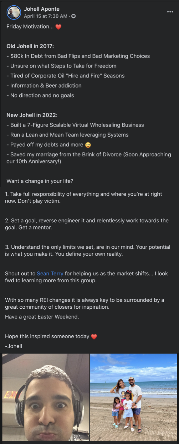 DISCLAIMER: Sean Terry and students talked about in the webcast and/or this page, have had unusual success with real estate. Most of the people who follow our techniques do not apply his strategies therefore do not make any money. Don't let that happen to you. Take what we learn and take action with it!